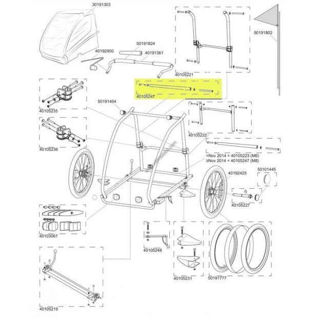 Barre transversale pour remorque de vélo Thule Coaster. Cette remorque peut se transformer en poussette une fois arrivé à destination.