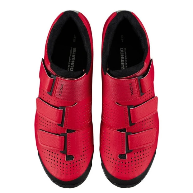 Les chaussures Shimano XC1 ont été spécialement conçues pour le Cross-country. Elles sont dotées d’un empeigne en cuir synthétique avec une structure micro-perforée permettant d’assurer une bonne ventilation et un meilleur ajustement. Les trois bandes de serrage assurent un maintien optimal du pied et diminuent les tensions sur le dessus du pied.