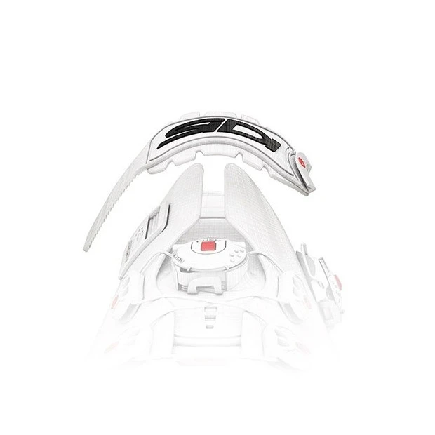 - Le Soft Instep Closure System, une large sangle anatomiquement incurvée, combinée à un coussinet en EVA souple et thermoformé, qui répartit uniformément la pression sur la zone du cou-de-pied. Ce système est réglable des deux côtés pour centrer parfaitement le coussin EVA.