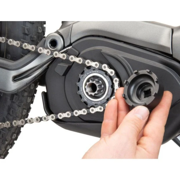 Le démonte-écrou Park Tool LRT-1 vous permettra d’enlever et d’installer le contre-anneau retenant les plateaux avant des vélos électriques dotés d’un moteur Bosch de 2e génération.