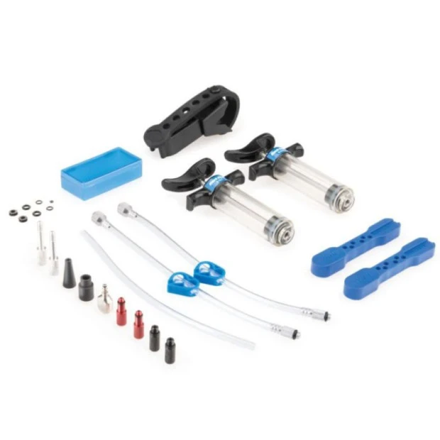 Le kit de purge de frein hydraulique Park Tool BKD-1 vous permettra de réaliser la purge de vos freins hydrauliques à base de fluide DOT comme un professionnel. Les systèmes hydrauliques doivent être purgés pour éliminer les bulles d’air et injecter un nouveau fluide propre et ainsi améliorer le freinage de votre système.