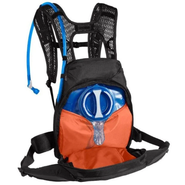 Son espace de rangement a été pensé pour que vous puissiez y glisser vos protections, votre casque intégral, ainsi que des outils et votre collation. De plus, il est doté d’un réservoir Crux de 3 litres et d’un panneau arrière ventilé pour vous permettre de rester au frais et hydraté tout au long de votre journée sur le vélo. Pour un accès instantané à votre réservoir, une trappe à fermeture éclair vous offre la possibilité de le remplir facilement.