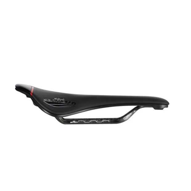 Les rails carbone possèdent un nœud en forme de X permettant de rendre le cadre encore plus léger et rigide, en évitant les torsions et en maintenant un excellent niveau de confort. Leur plus grande longueur assure l’un des réglages les plus étendus vers l’avant et l’arrière. Les rails en carbone ont une section de 9,8x7mm, qui augmente la résistance et assure des structures extrêmement légères.